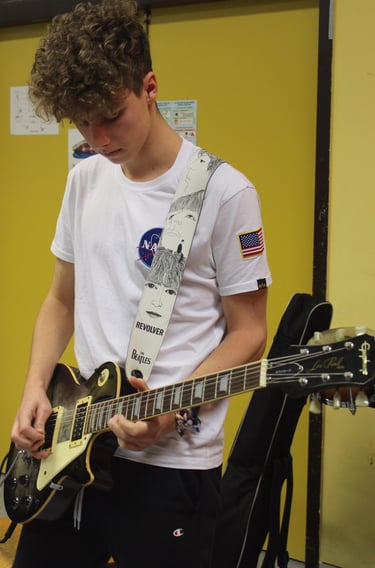 Im Gitarrenunterricht steht die Begeisterung für Musik im Mittelpunkt. Ob in der Gruppe oder im Einzelunterricht – gemeinsam lernen wir Akkorde, Rhythmen und Songs, die wirklich Spaß machen. Mir ist wichtig, dass meine Schüler:innen nicht nur Technik lernen, sondern auch Motivation und Selbstvertrauen entwickeln, um mit Freude Gitarre zu spielen.